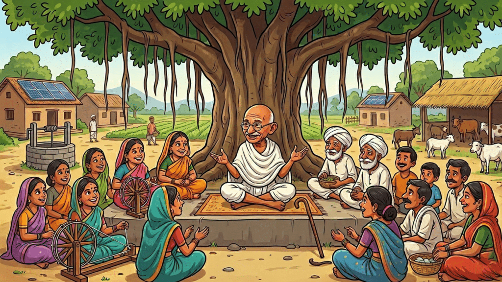 For Gandhi, the village was not a peripheral administrative fragment of a larger political order; it was the foundational unit of civilisation itself. In his moral and political imagination, India was not to be organised as a centralised nation-state that gradually delegates authority downward, but as an organic constellation of village republics, each one complete in itself, yet linked to others through ethical and economic interdependence rather than hierarchical command.